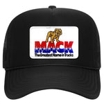 Hats are stitched and pressed onto a standard sized, adjustable classic trucker, all OSFA