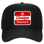 Hats are stitched and pressed onto a standard sized, adjustable classic trucker, all OSFA