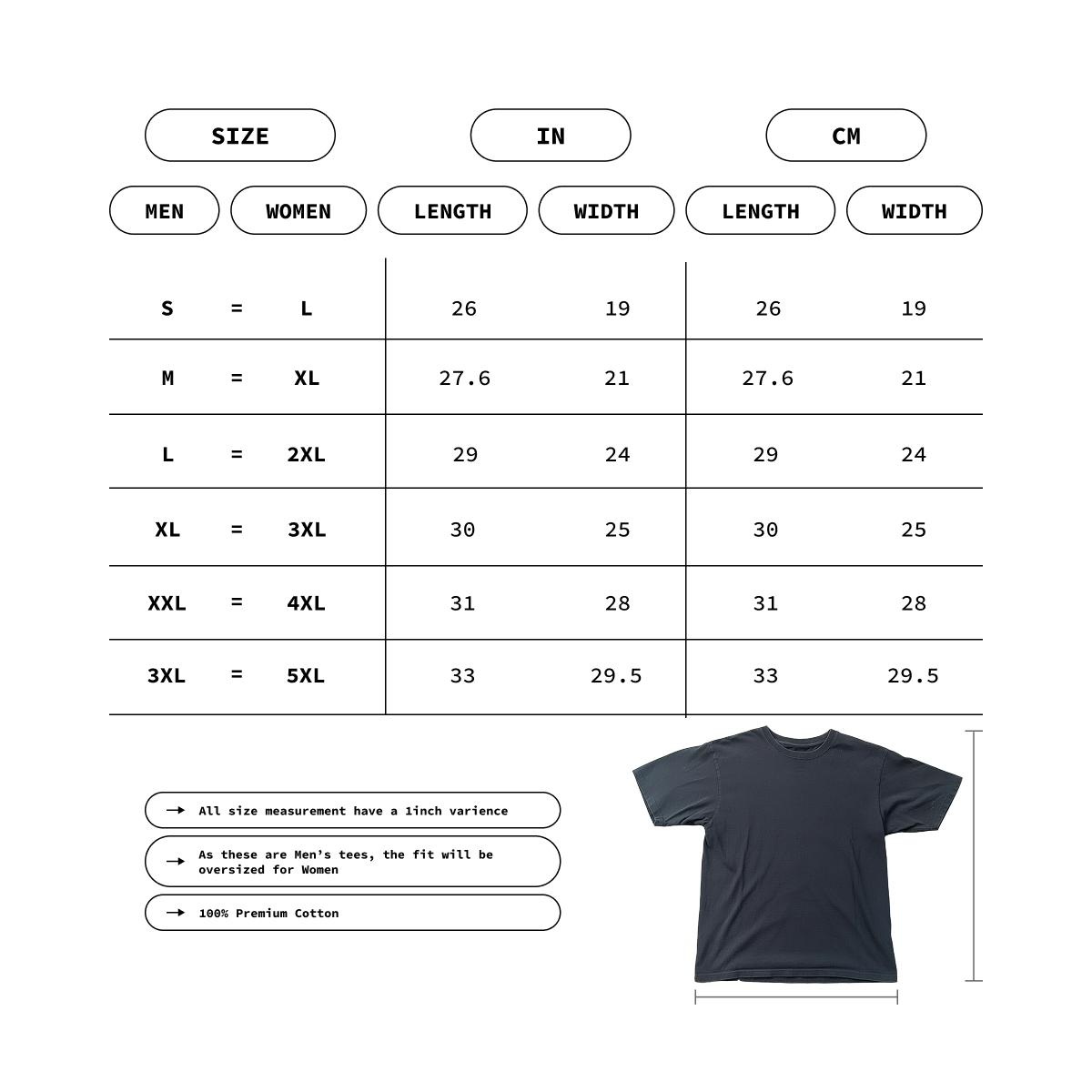 = All sizes are available in Men's sizing. To find the women's equivalent, please view the Women's size chart